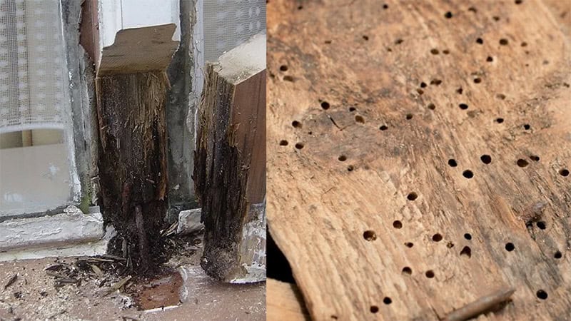 Holzschädigende Insekten legen ihre Eier im Holz ab. Die Zerstörung erfolgt durch die Larven im Inneren.