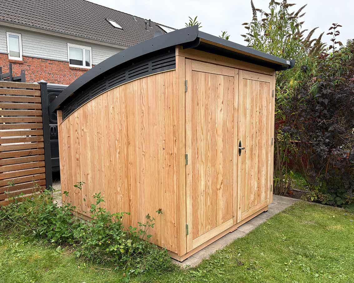 Garage, Box, Port oder doch lieber ein Haus? In unserer Produktpalette finden Sie auch ein Fahrradhaus, das schöne Gestaltung mit einer stabilen Holz-Metallkonstruktion vereint.